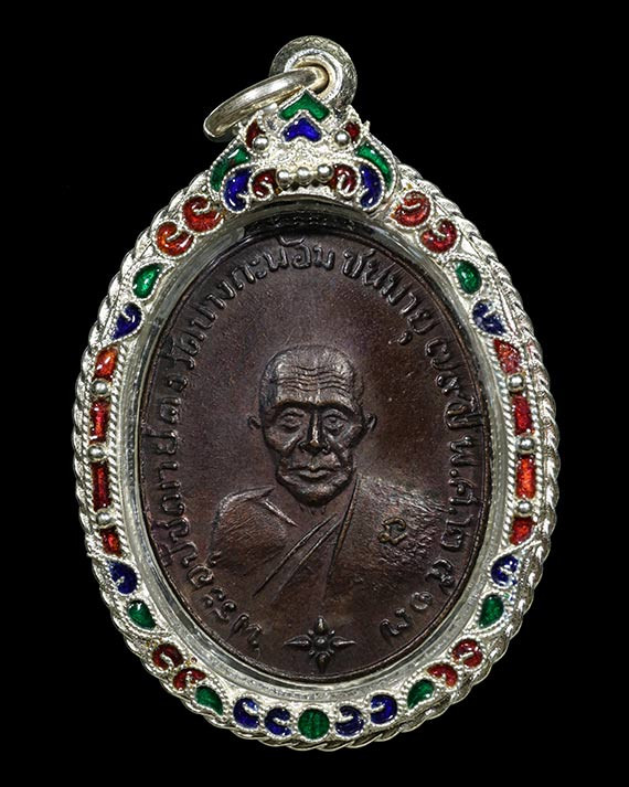เหรียญหลวงปู่รุ่ง วัดท่ากระบือ 2538 พิมพ์ใหญ่ เนื้อเงินลงยา บล็อกหูขีด |