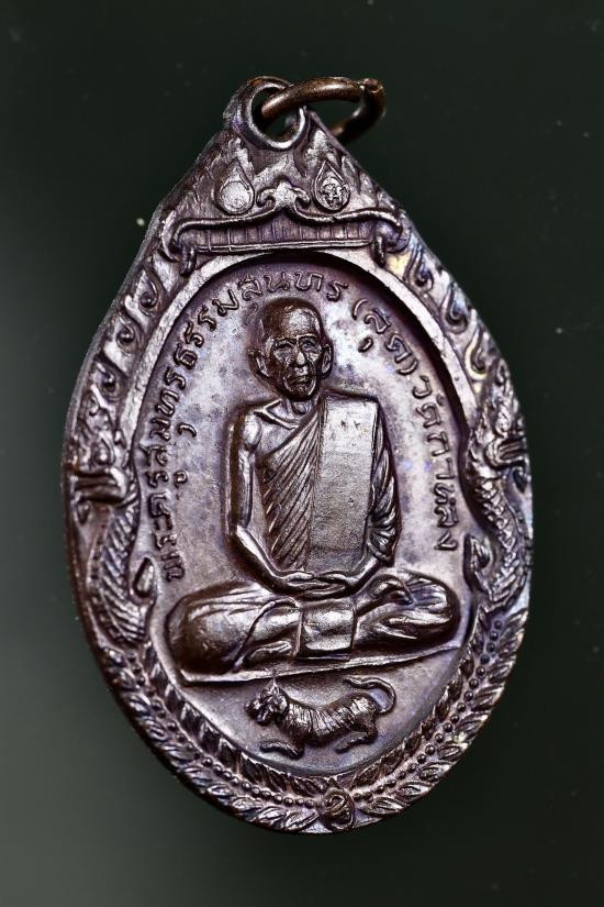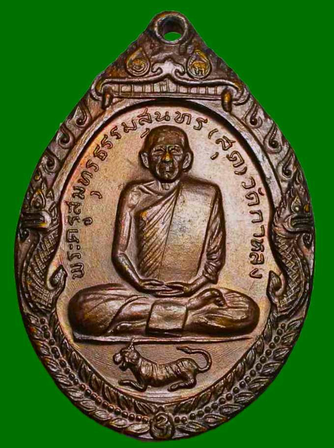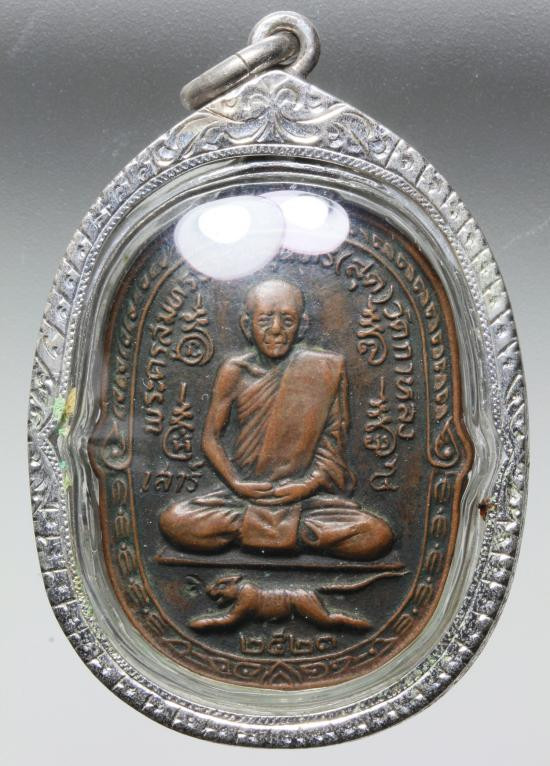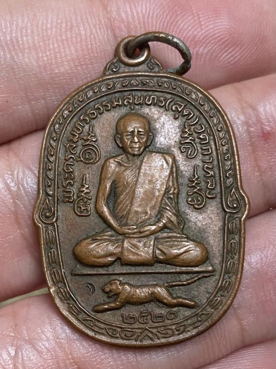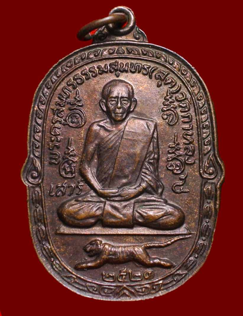 เคาะเดียวแดง เหรียญเสือเผ่น หลวงพ่อสุด ปี 2521 หางตรง ต๊อกโค๊ต พร้อมเลี่ยมเงิน |