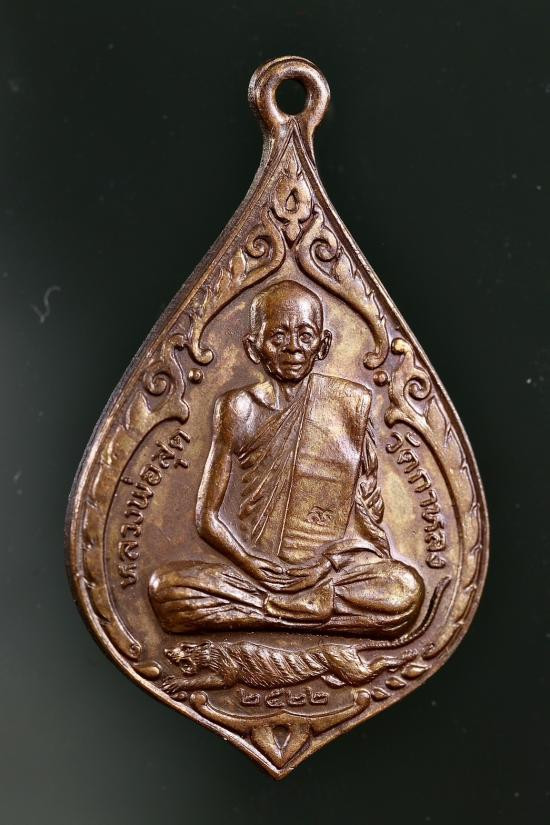 เหรียญเสือหมอบ หลวงพ่อสุด ปี19 เนื้อทองแดง บ.วงเดือน |