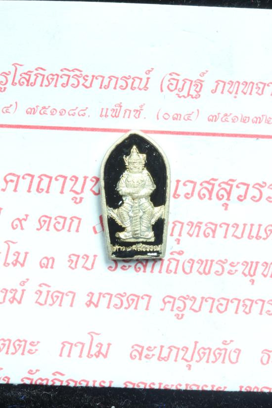 **กะไหล่เงินลงยา ราคาโคตรคุ้ม เคาะเดียว ปรกลงยา **ปรกใบมะขาม ท้าวเวสสุวรรณ หลวงพ่ออิฏฐ์ วัดจุฬามณี รุ่น 4 ปี2563 ///R13 |