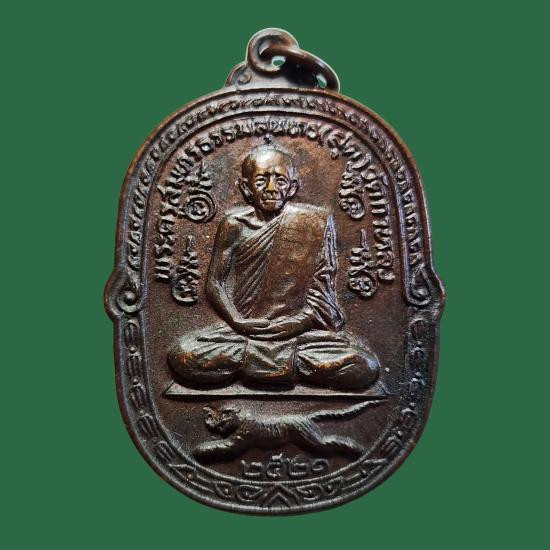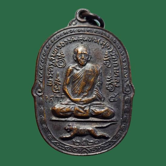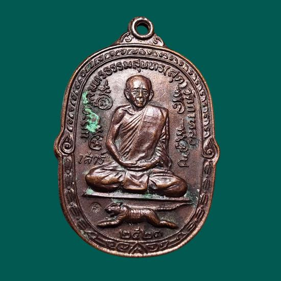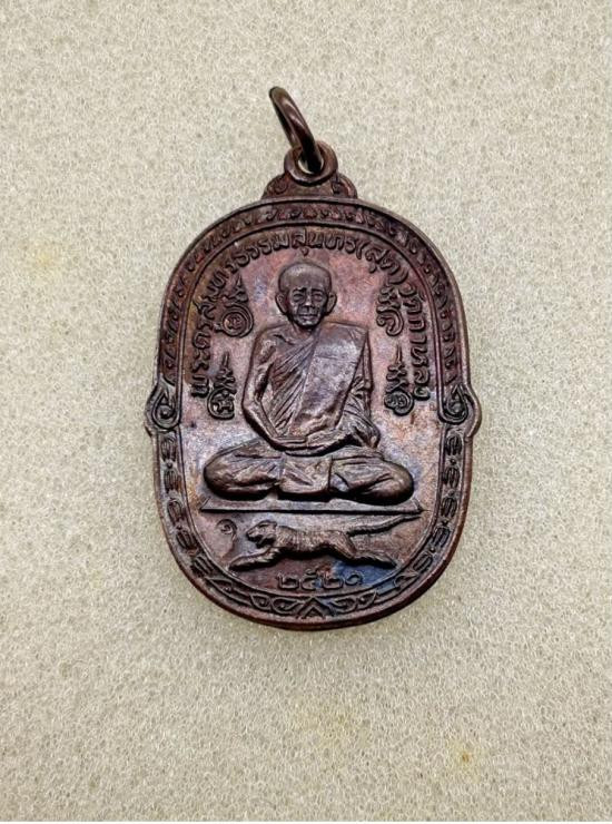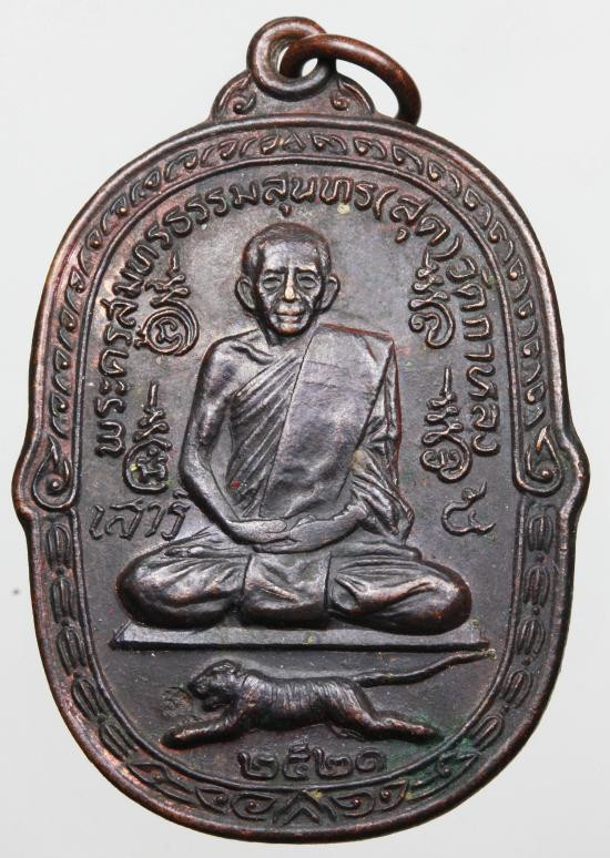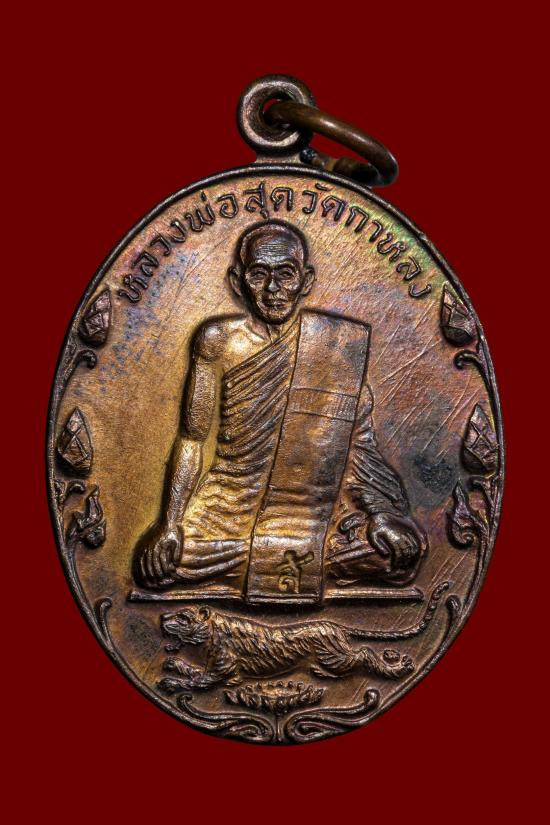 เคาะเดียวแดง.....เหรียญเสือกลับ หลวงพ่อสุด วัดกาหลง (ออกวัดรวกสุทธาราม) ปี 2521 เนื้อทองแดง |