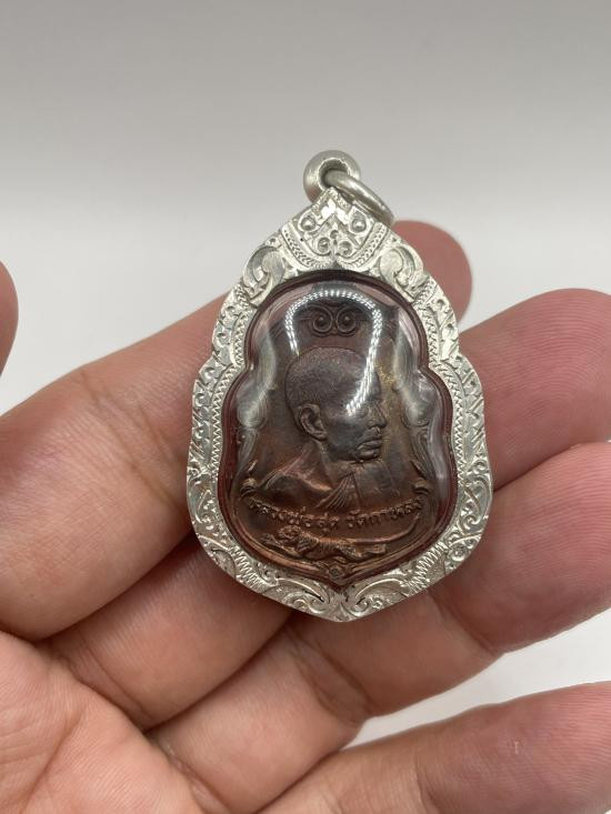 เหรียญหันข้าง หลวงพ่อสุด วัดกาหลง ปี2525 ทองแดงผิวไฟสวยแชมป์ เลี่ยมตลับเงิน |