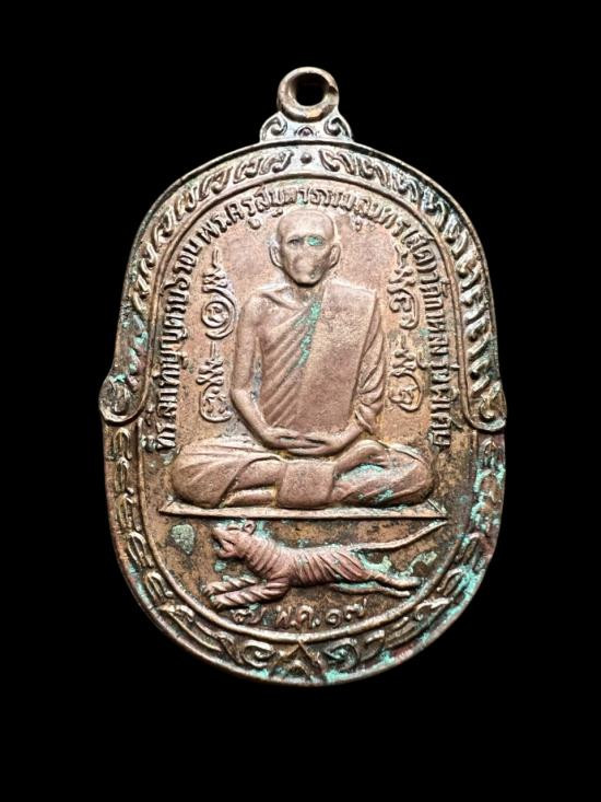 เหรียญเสือเผ่น3 (120ปี ชาตกาล) วัดกาหลง เนื้อทองแดงรมดำ ซีลเดิม |