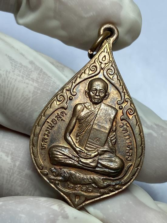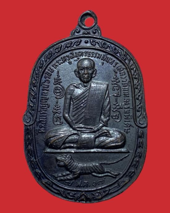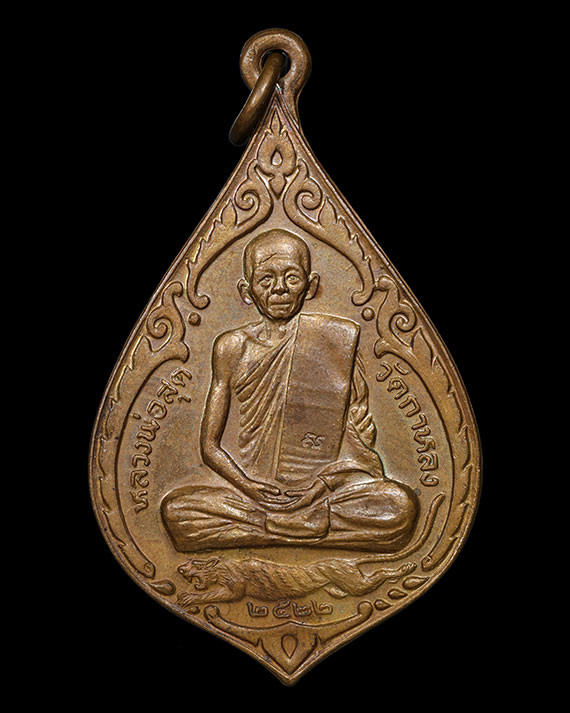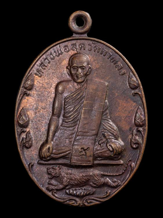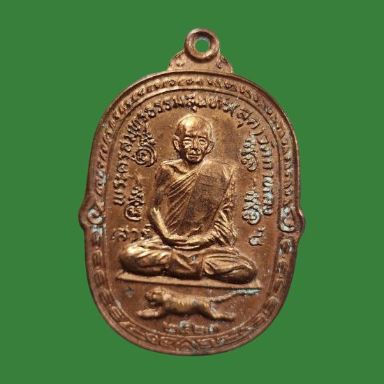 เหรียญเสือเผ่น หลวงพ่อสุด วัดกาหลง เนื้อทองแดง บล็อกวัดศาลาครืน ปี 2517 |