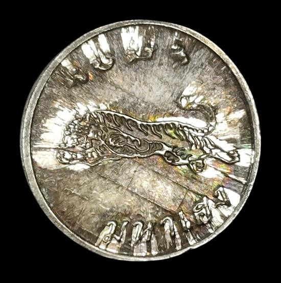 เหรียญเสือหมอบ หลวงพ่อสุด วัดกาหลง ปี 19 เนื้อทองแดง กะไหล่เงินสวยๆเดิมๆ |