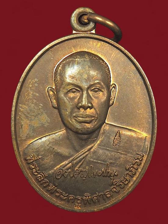 เหรียญรุ่นแรก พระมหาสุรศักดิ์ วัดประดู่พระอารามหลวง เนื้อทองแดง นิยม จาร หน้า-หลัง |