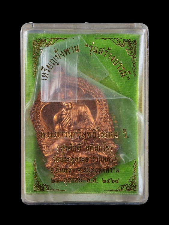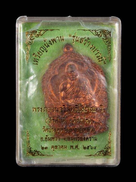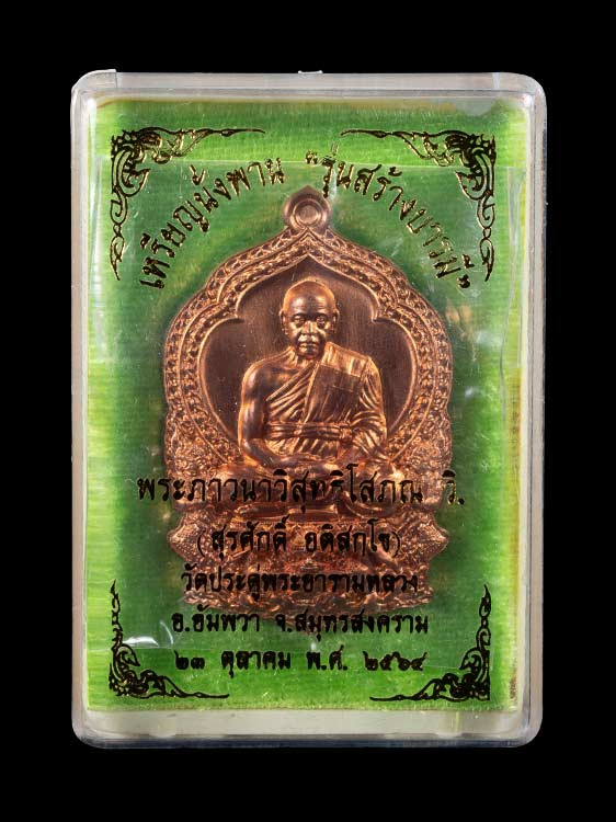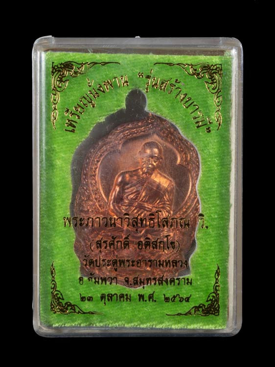 เหรียญพระมหาสุรศักดิ์ วัดประดู่พระอารามหลวง จ.สมุทรสงคราม รุ่นเศรษฐีอัมพวา เนื้อทองแดง พร้อมซองเดิมจากวัด |