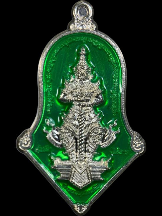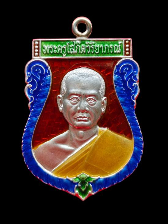 เหรียญนั่งพาน รุ่นสร้างบารมี พระมหาสุรศักดิ์ วัดประดู่พระอารามหลวง เนื้อเงินลงยาสีแดง พร้อมบัตรรับรองครับ |