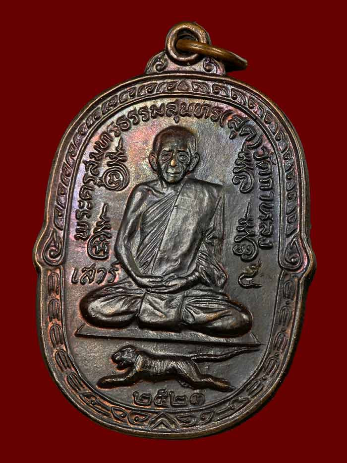 เคาะเดียวแดง เหรียญหลวงพ่อสุด วัดกาหลง ปี 2520 รุ่นเสือคำราม เนื้อทองแดง |