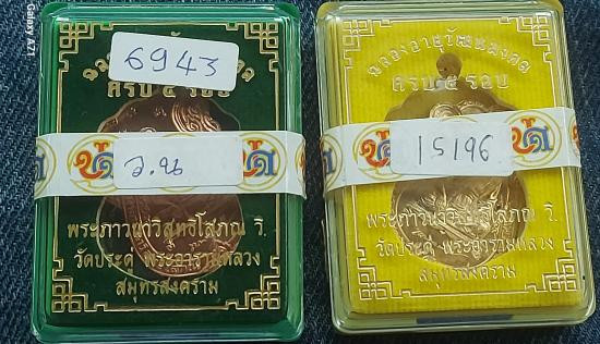 เหรียญฉลองอายุวัฒนมงคล ครบ 5 รอบ พระภาวนาวิสุทธิโสภณ(พระมหาสุรศักดิ์) วัดประดู่ พระอารามหลวง สมุทรสงคราม เนื้อสัตตะ เลข 4 หลัก + ทองแดง เลข 5 หลัก รวม 2 เหรียญ |
