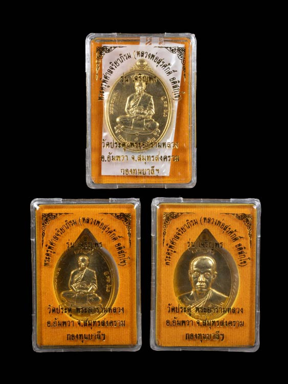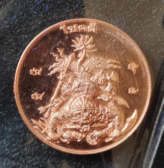 เหรียญโชคดี พระมหาสุรศักดิ์ วัดประดู่พระอารามหลวง อัมพวา เนื้อทองแดง |