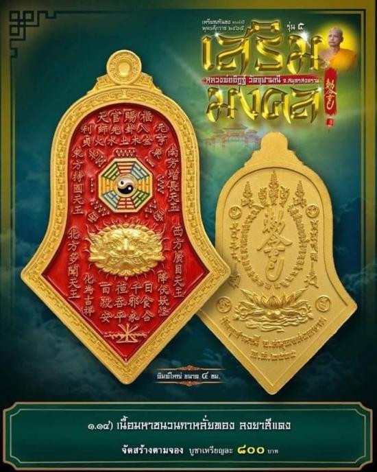 เหรียญกันชง ทรงจำปี เสริมมงคล รุ่น ๕ ปี ๒๕๖๕ หลวงพ่อ อิฎฐ์ วัดจุฬามณี รายการที่ ๑.๑๔ พิมพ์ใหญ่ เนื้อมหาชนวนกาหลั่ยทองลงยาสีแดง ซิลเดิมๆ |