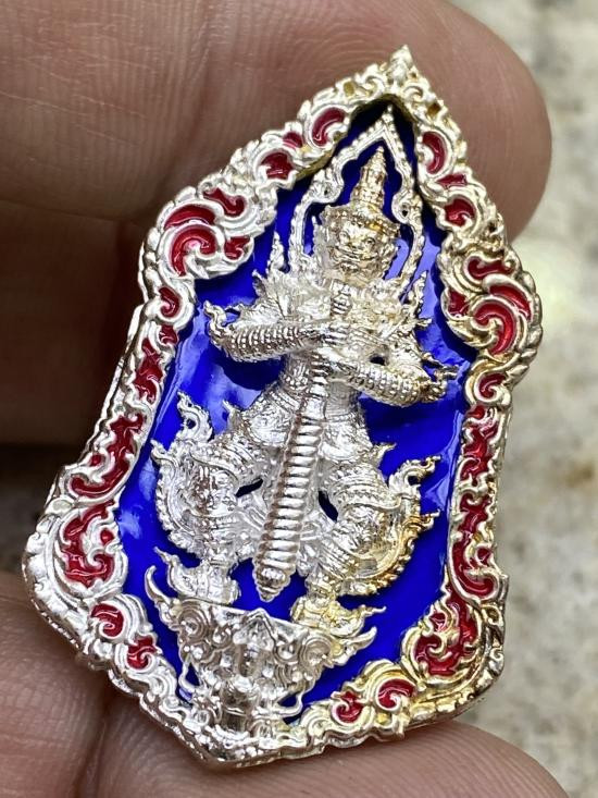 เหรียญท้าวเวสสุวรรณโณ จตุมหาราชิกา รุ่นปลดหนี้ เนื้อสัมฤทธิ์ชุบเงินลงยาน้ำเงิน วัดแค 2565 เลข 1059 ไม่ได้ใช้ โดน อากาศตามรูป |