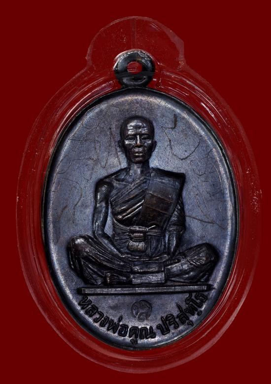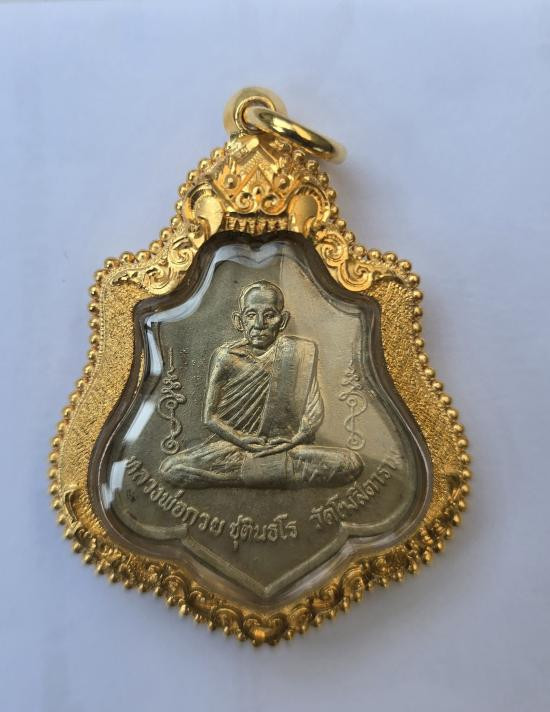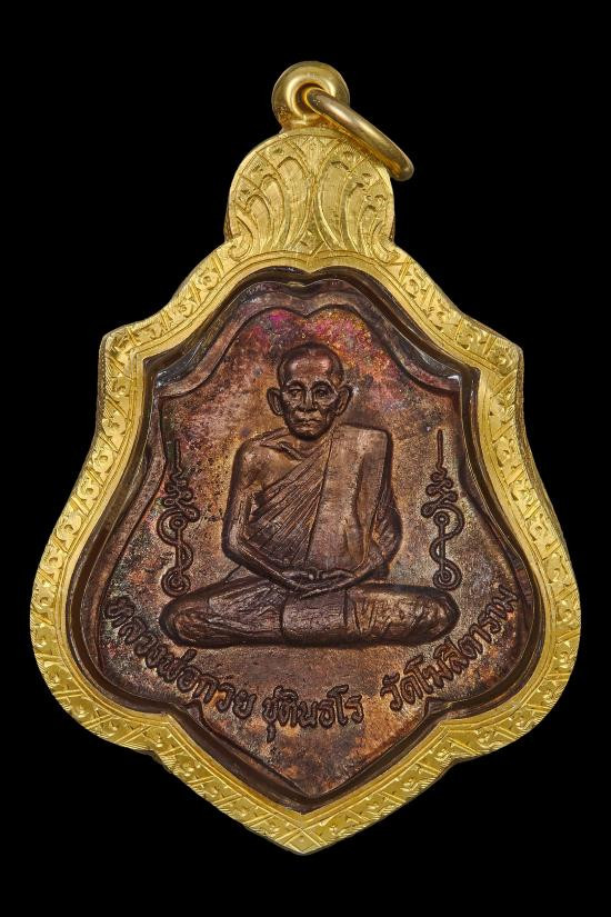 หลวงพ่อคูณ นั่งพานชนะมาร เนื้อเงิน สวยใส จมูกโด่ง หมายเลขมงคล 168 เลี่ยมทองลงยา |