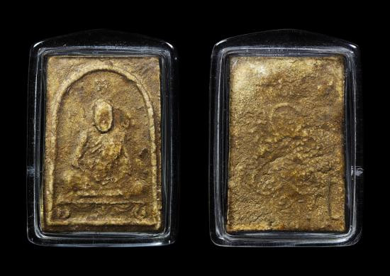 พระผงของขวัญ วัดปากน้ำ รุ่นแรก ปี 2493 เคลือบเดิม มีกรอบทองคำ พร้อมบัตรรับรองพระแท้ G-pra |