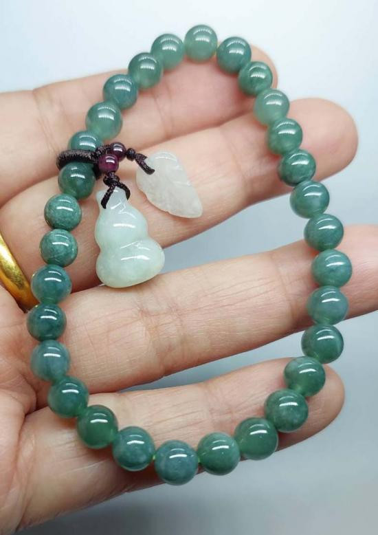 ***วัดใจ***สร้อยข้อมือ หยกจักรพรรดิ์ พร้อมจี้น้ำเต้าดูดทรัพย์ เม็ด 8 มิล สวยๆ |