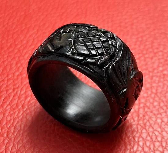 แหวนประดับพลอยสตาร์แซฟไฟร์ นิหล่า เนื้อเทียนแบบดิบ (ไม่ผ่านการเผา) ฉลุลายแบบโบราณแบบหัวมอญ |
