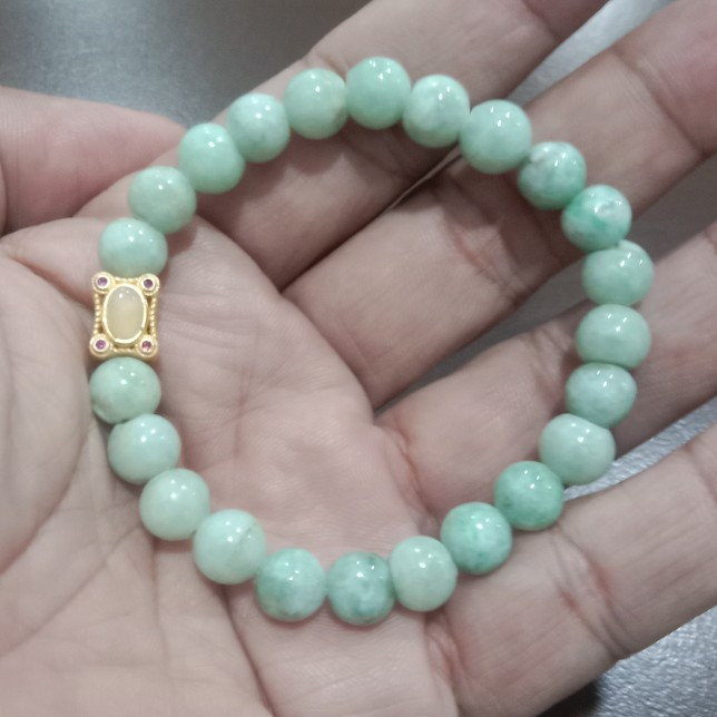 สร้อยข้อมือหยกพม่า/ขนาด8มิล/ร้อยยางยืดใส่สบาย/สินค้ามือ1/เส้นที่1 |
