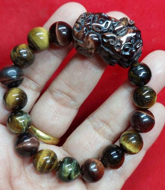 ***วัดใจ***สร้อยข้อมือปี่เซี๊ยะ หินไทเกอร์อาย 10 มิล สวยๆ |