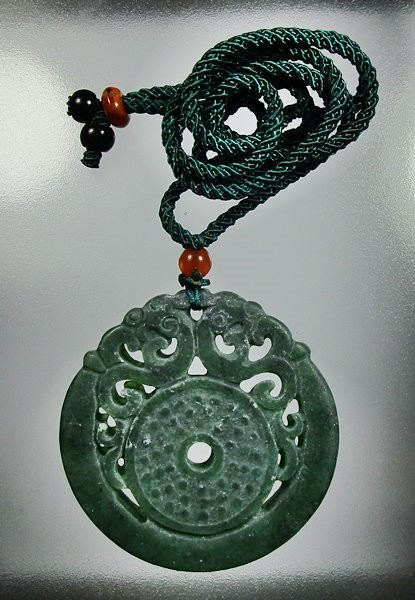 จี้หยกโดนัทหรือปี่ดิส (Green Jadeite) เลี่ยมเงินแท้ งานแฮนเมด ขนาดหยก 1.5 ซ.ม. |