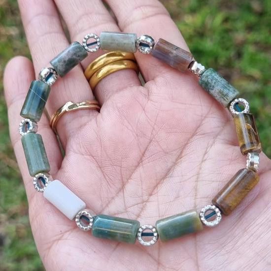 สร้อยข้อมือ หยก (Jade) มอสอาเกต (Moss Agate) อินเดียนอาเกต (Indian Agate) ของแท้ |