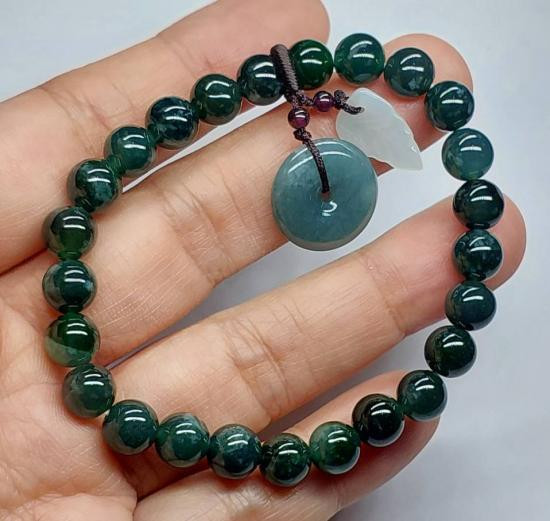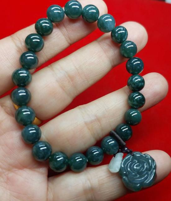 ***วัดใจ***สร้อยข้อมือ หยกจักรพรรดิ์ พร้อมจี้ เม็ด 8 มิล สวยๆ |