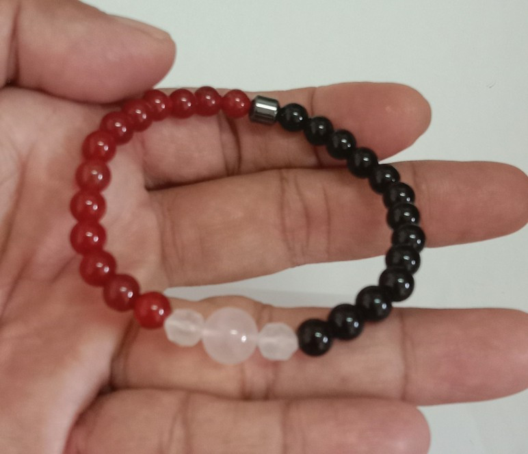 แก้วโป่งขาม ถักล้อมเป็นสร้อยข้อมือ ปรับขนาดได้ครับ |