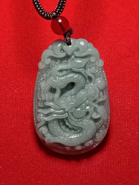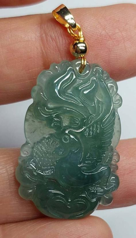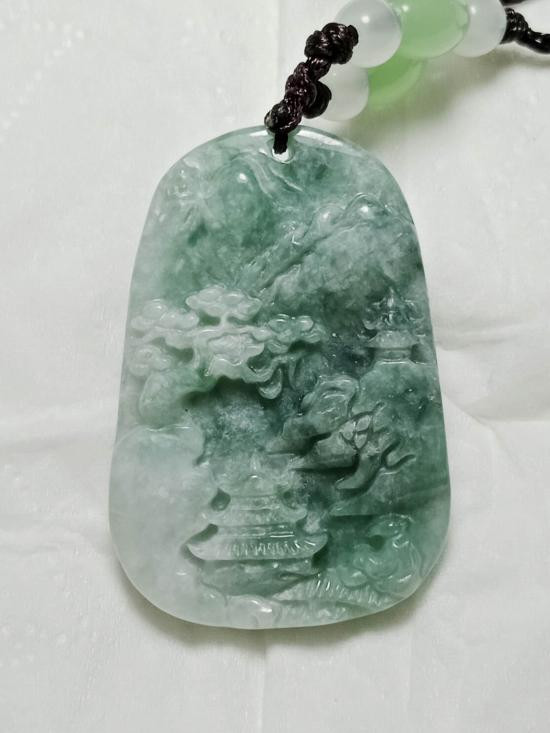 จี้หยกเขียวธรรมชาติแกะสลักด้วยมือ หลิงกวน |
