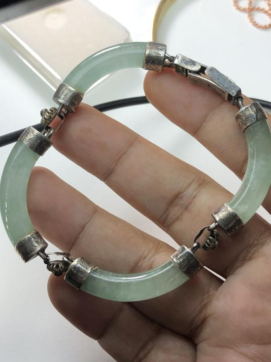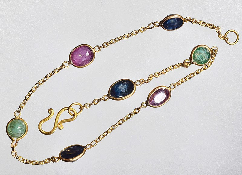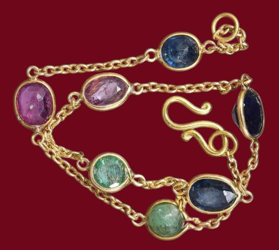 ((1000-)))สร้อยข้อมือทองเก่าประดับพลอยแท้+บัตรตรวจเปอร์เซนทอง (2) |