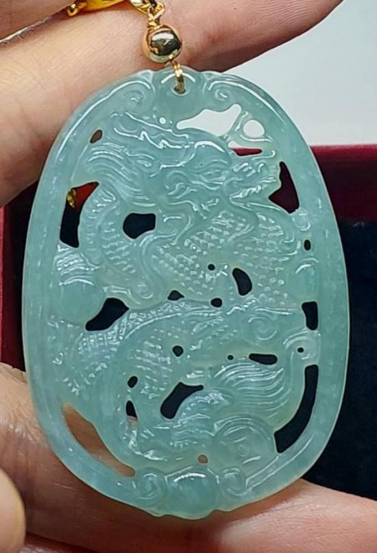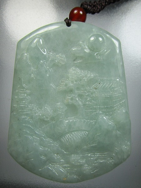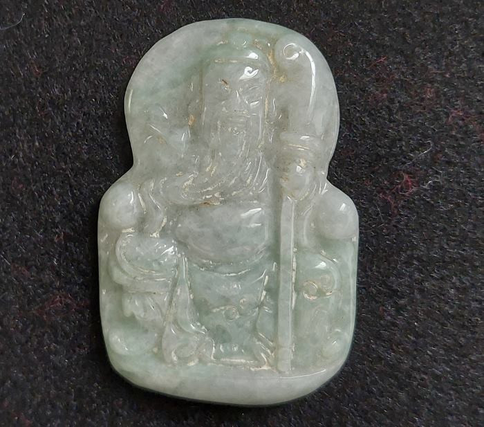จี้หยกแกะเทพเจ้ากวนอู หยกสีเขียวอ่อนเนื้อเทียน |