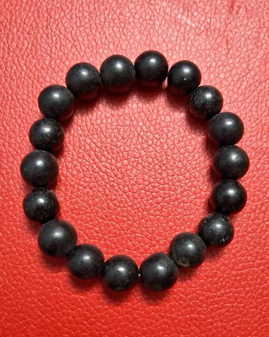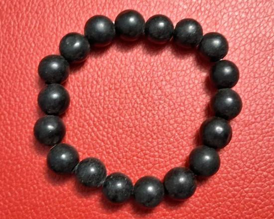 สร้อยประคำข้อมือหยกดำ หยกพม่าแท้ 100 % ขนาด 12 มิล (18 เม็ด) ร้อยด้วยเอ็นยืด ขนาดฟรีไซด์ |