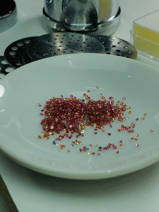 โกเมนแดง (สยาม บ่อไร่) พลอยเก่าเก็บ ขนาดประมาณ 2.5 มิล 110 เม็ด น้ำหนักรวม 10.05 กะรัต |