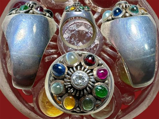 แหวนพลอยนพเก้า เงินแท้ พลอยแท้ งานเก่า ตามตำราไทยโบราณ |
