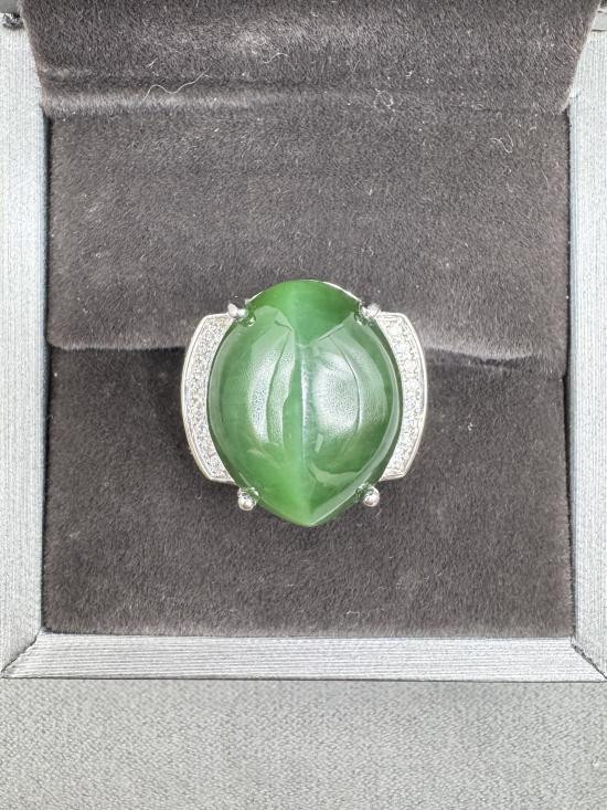 แหวนเงินหัวหยกพม่า เนื้อเทียน เม็ดโตๆ Type A |