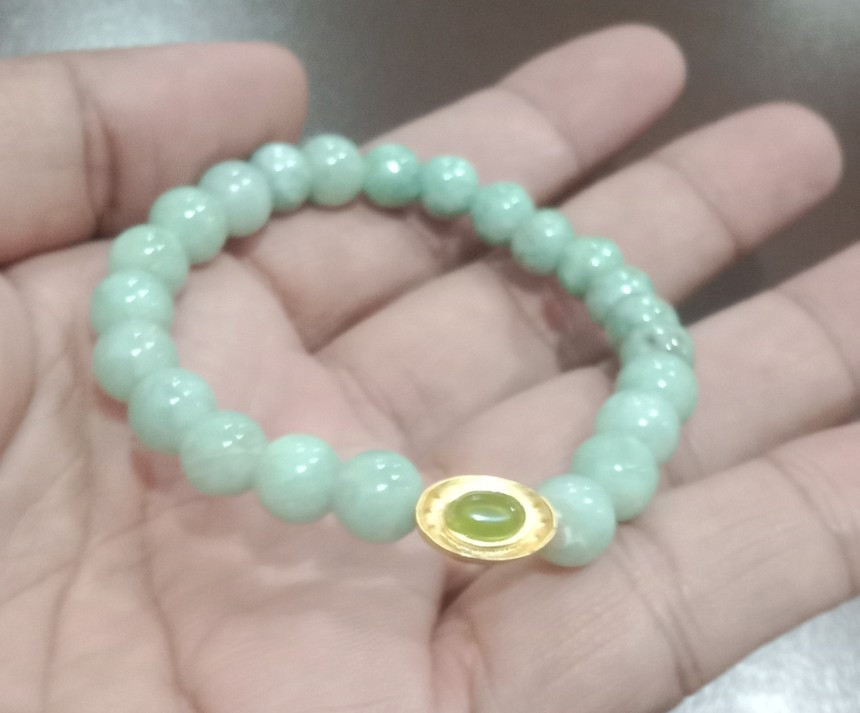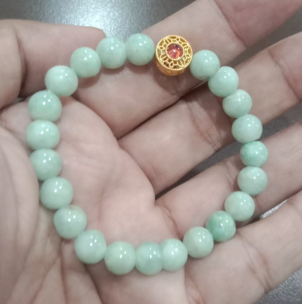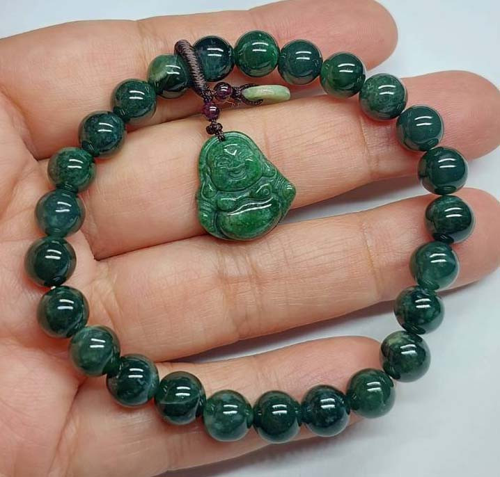***วัดใจ***สร้อยข้อมือ หยกพม่า พร้อมจี้ เม็ด 6 มิล สวยๆ |