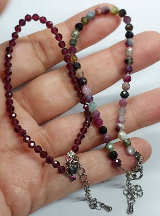 **วัดใจ***สร้อยโกเมนเจียเหลี่ยม เล่นแสง กับ ทัวร์มาลีน Tourmaline ขนาดเล็ก 2 mm |