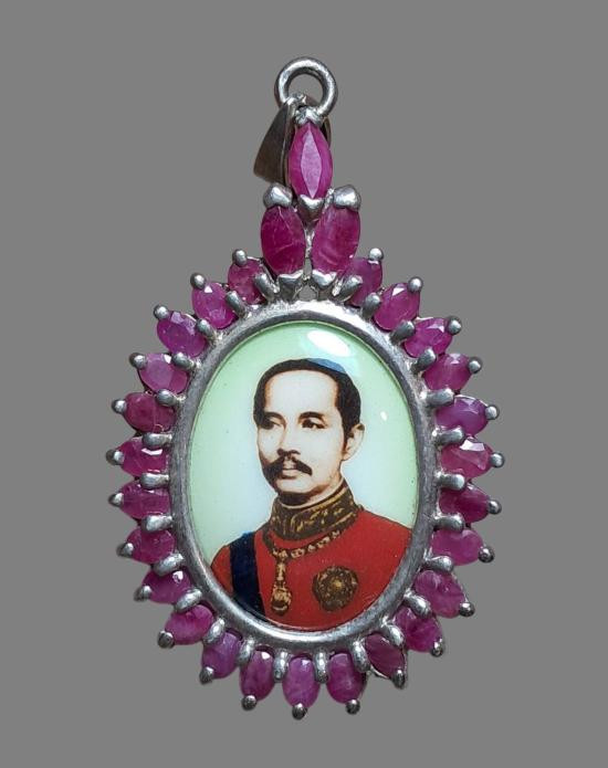 กระดุม เนื้อเงิน ลงยาเก่าโบราณ ด้านหลังมีตอกภาษาอังกฤษ สภาพสวยสมบูรณ์ น้ำหนัก 4.52 กรัม |