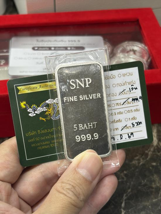 วิ่งแล้ว!!! แท่งเงิน 99.999% นน. 5บาท (76.xxกรัม) SNP ห้างทองแสงนภา |