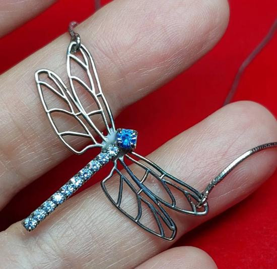 ***วัดใจ***สร้อยคอรูปแมลงปอ จี้ประดับคริสตัลสีฟ้า หรือเพชร CZ แบรนด์ Agatha Paris |