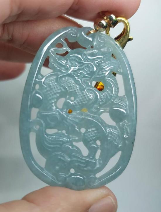 จี้มังกรหยก (มังกรนำโชค) วัดมังกรกมลาวาส (เล่งเน่ยยี) เนื้อหยกสีโอเชี่ยนบลู สวยๆ |