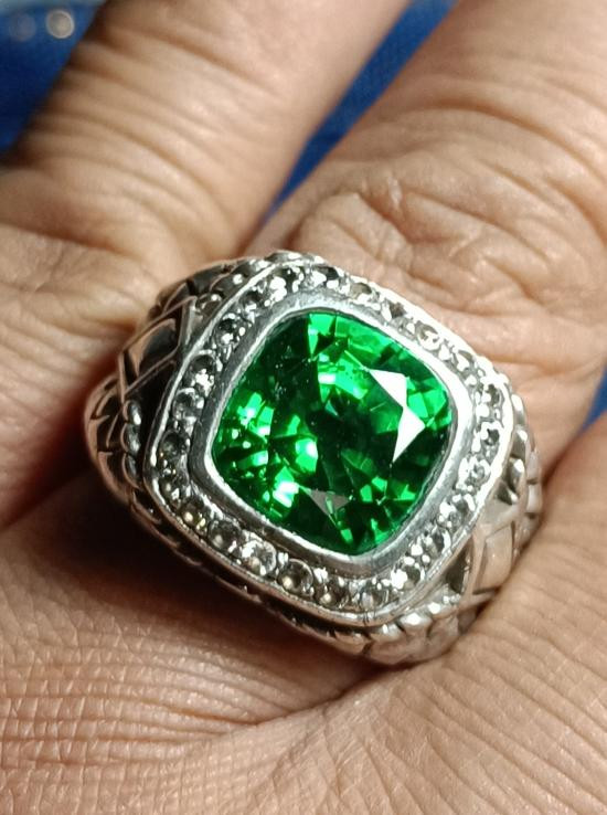 แหวนเงินสั่งทำ หัวพลอยสีเขียว สภาพใช้ พ่อสวย วัดใจไปครับ |