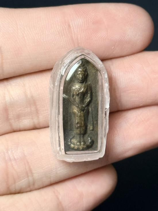 พระอุปคุต ศิลปะเขมร เลี่ยมกระเช้าเงิน พร้อมบัตรรับรอง |