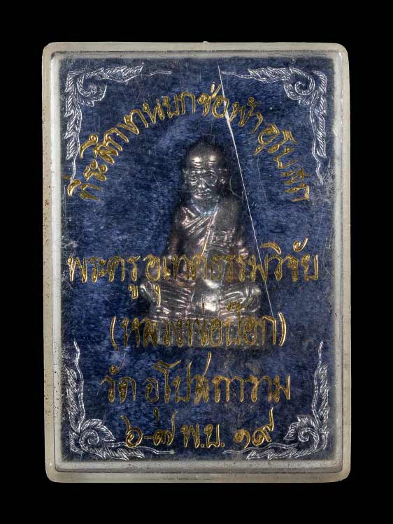 รูปหล่อหลวงพ่อเดิม วัดหนองโพ ออกวัดหนองบัว ปี26 เนื้อเงิน 2โค๊ต พร้อมกล่อง |