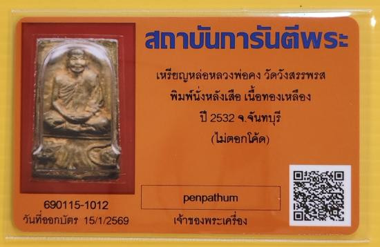 รูปเหมือนพ่อท่านเขียว วัดหลงบนรุ่นแรก เนื้อทองแดง ปี2513 พร้อมบัตรการันตี |