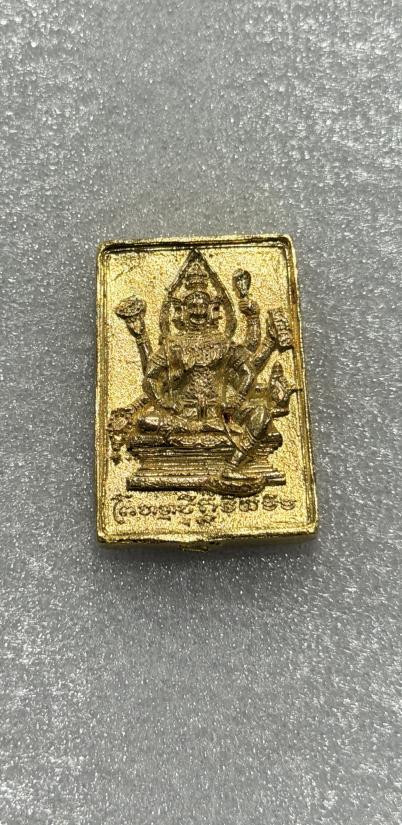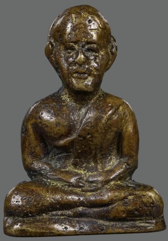 ฤาษีชีวกโกมารภัจจ์ รุ่น 9 อริยะ 5 แผ่นดิน เนื้อทองฝาบาตร หลวงปู่หมุน ฐิตสีโล ปลุกเสก ปี 2544 |