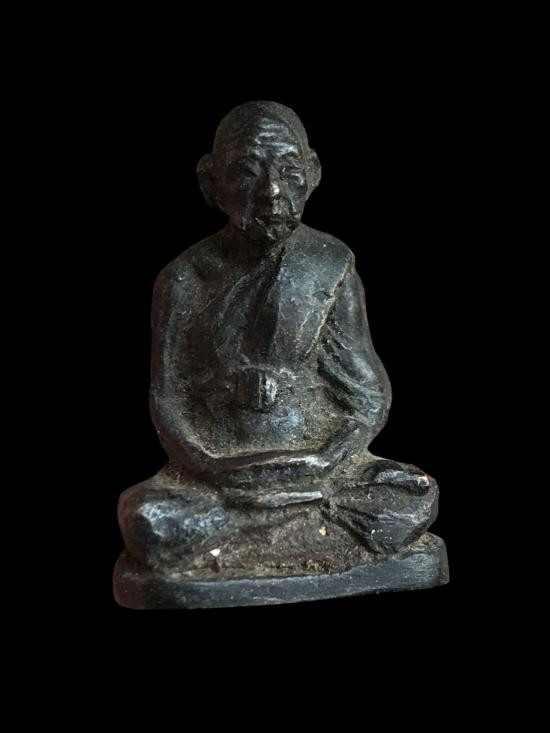 รูปหล่อหลวงปู่บุดดา รุ่นบรรจุแป้งเสก ปี 2536 เนื้อทองแดงรมดำ วัดกลางชูศรีเจริญสุข จ.สิงห์บุรี |