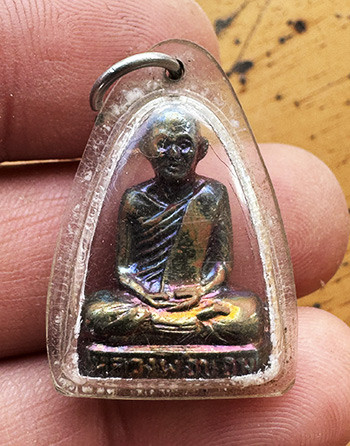 รูปหล่อปั้มหลวงพ่อขอม วัดไผ่โรงวัว เลี่ยมเดิม |