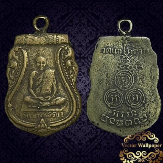 เหรียญหล่อระฆังหลังค้อน วัดระฆัง เนื้อทองเหลือง ปี2453 เลี่ยมทองพร้อมใช้ |