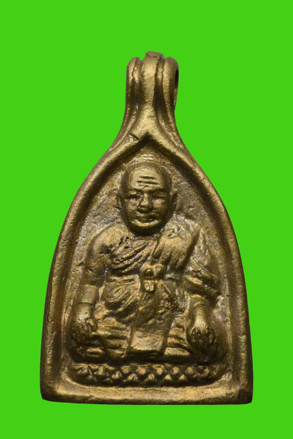 รูปหล่อปั้มรุ่นแรกหลวงพ่อหยอด วัดแก้วเจริญ สมุทรสงครามเนื้อฝาบาตร ตอกโค๊ตชัดเจน |