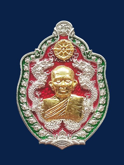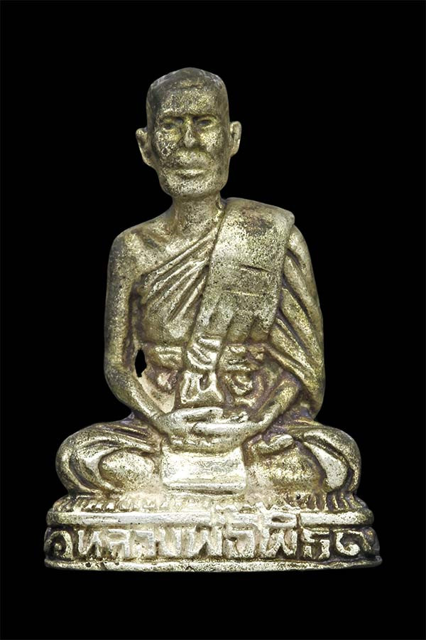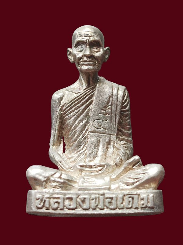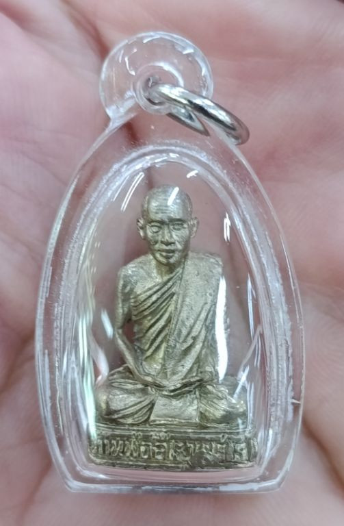 รูปหล่อ หลวงพ่อจง วัดหน้าต่างนอก จ.อยุธยา เนื้อเงิน เลี่ยมเงินลงยา อย่างดี |